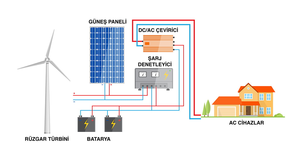 - Rüzgar Enerjisi Sistemleri: Rüzgar türbinlerinden gelen değişken hızlı DC elektriği, istikrarlı AC elektriğe dönüştürmek için invertörler kullanılır.